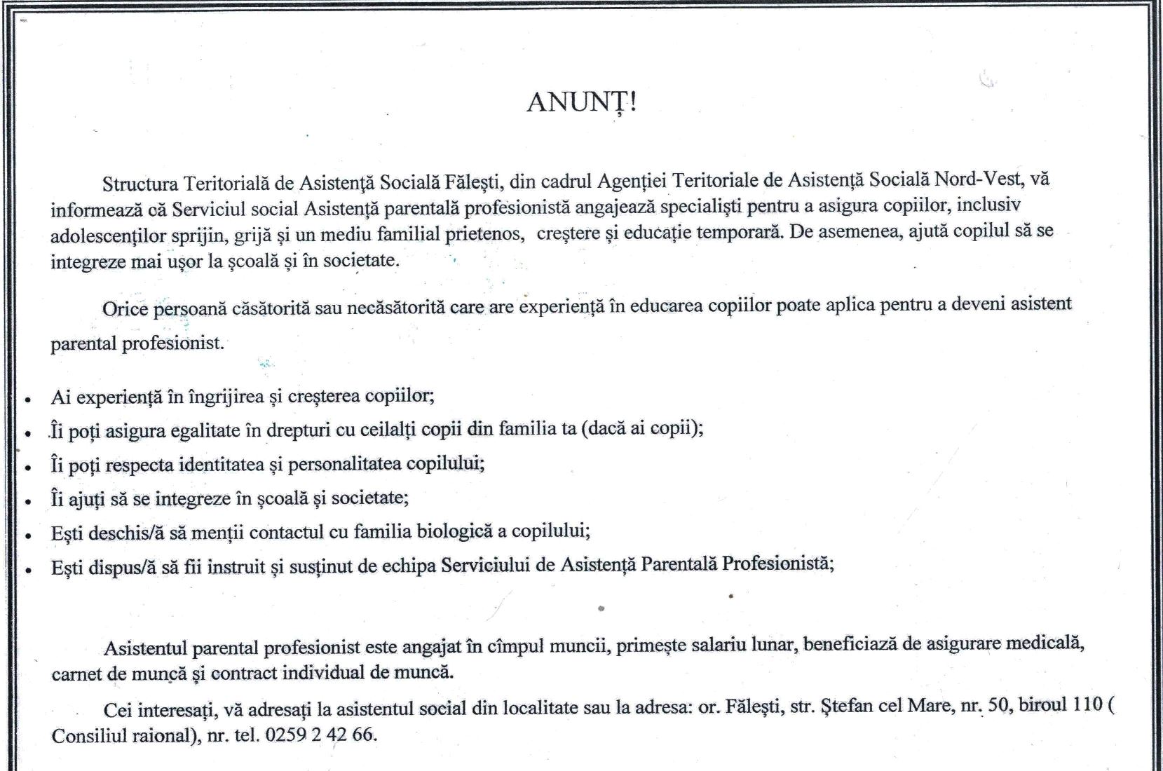 Stimați locuitori ai satului Călugăr, în scopul aprofundării dialogului cu societatea civilă realizată prin deschidere și transparență, la data de 26.02.2025 ora 14:00 în incinta Primăriei din localitatea dumneavoastră, va avea loc o ședință cu participarea șefului Secției securitate publică a Inspectoratului de poliție Fălești, comisar principal Petru ROSOVSCHI, care v-a aborda diferite tematici.