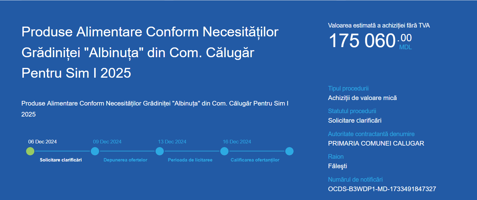 Data limită de depunere a dosarelor este 02.12.2024 ora 9:00.
